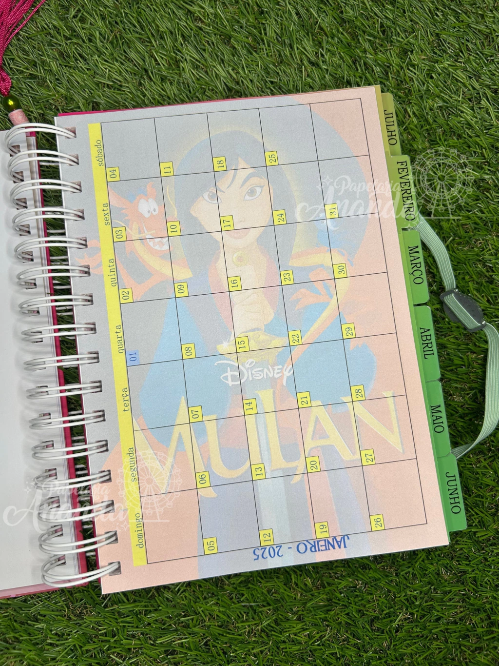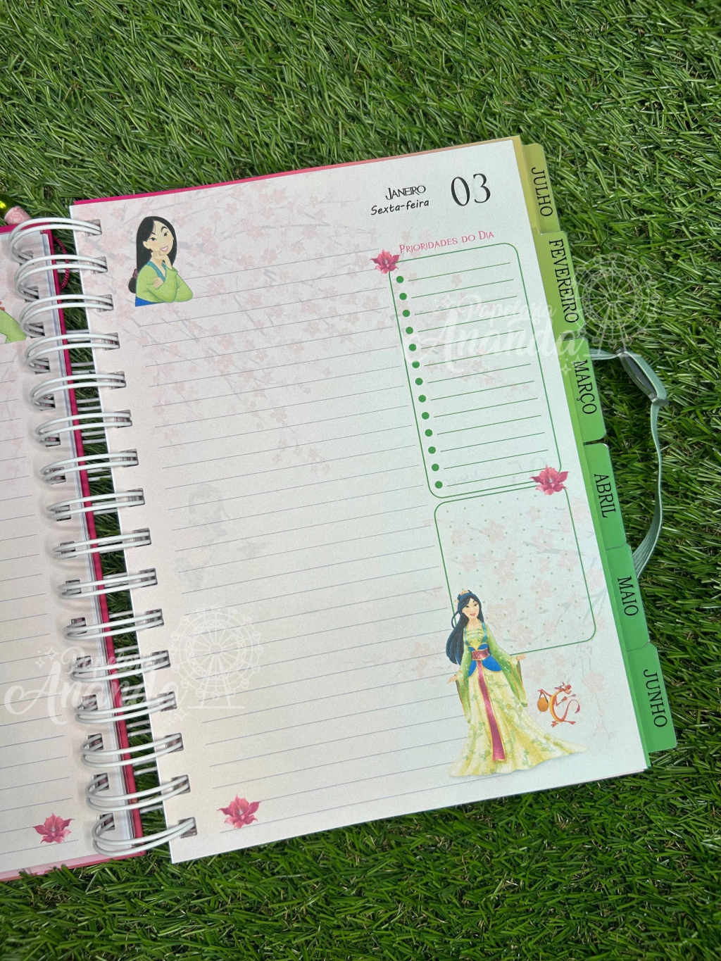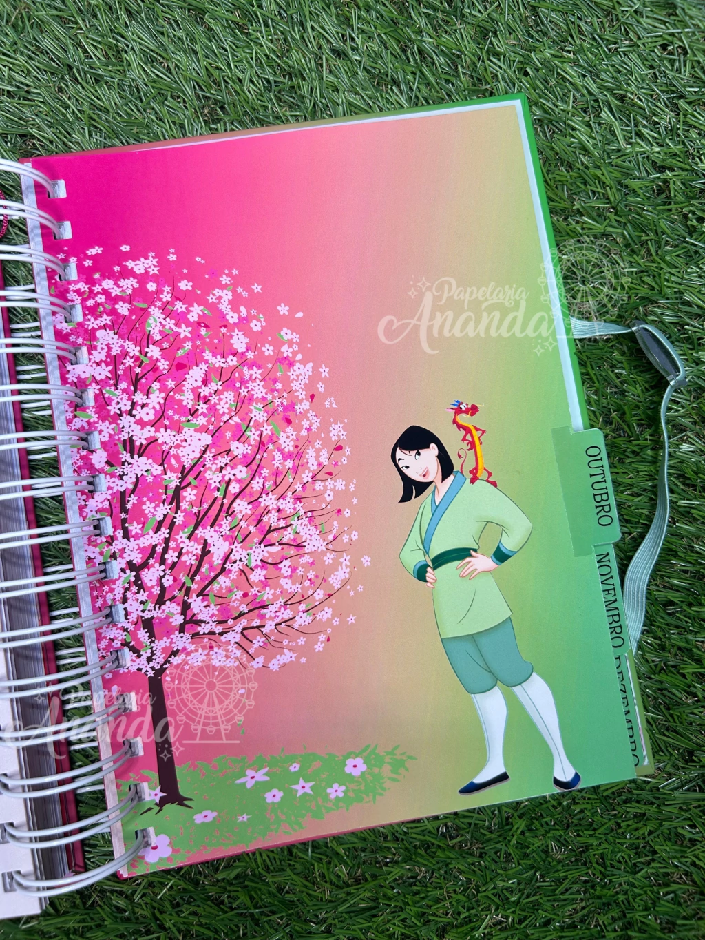 Além disso, as páginas decoradas e as divisórias personalizadas trazem um toque especial e criativo, tornando o uso da agenda ainda mais prazeroso. Mantenha-se organizado e inspire-se a cada dia com a Agenda Mulan!