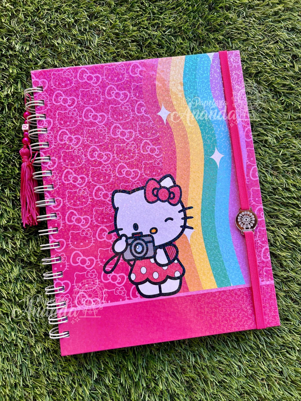Capa dura com elástico e tessel de seda (Miçangas podem variar)