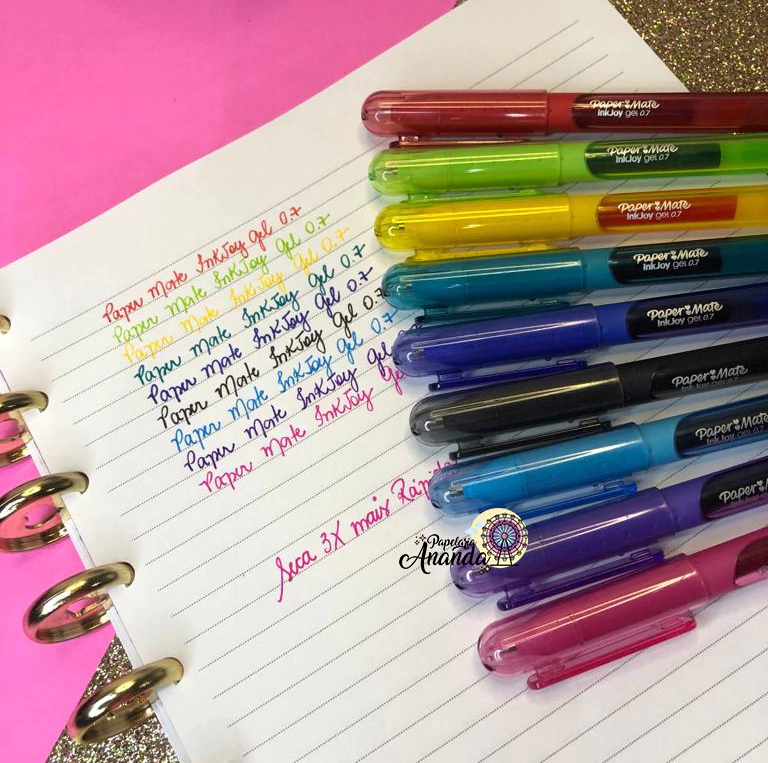 A linha Gel apresenta uma tinta que seca 3 vezes mais rápido, é como uma festa na página onde manchas não são convidadas!